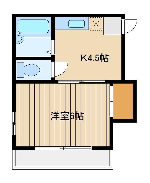 | 築年月 | 1988年10月 | 間取り | 1K( 洋室6畳/K4.5畳 ) | 専有面積 | 21.4m2 |